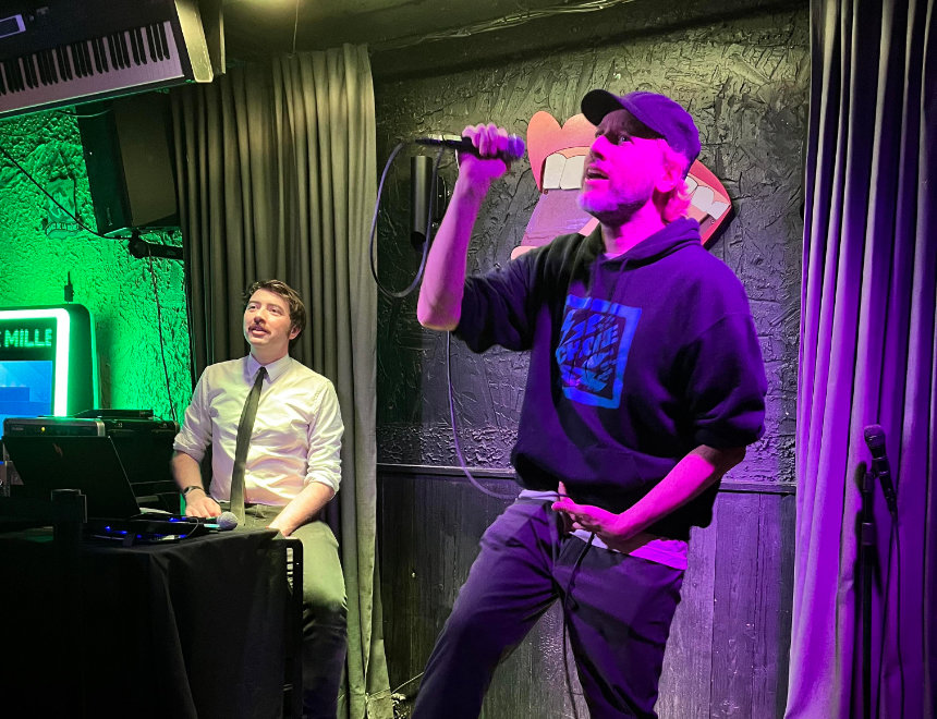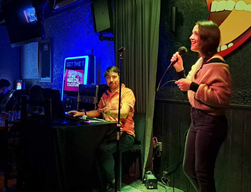 Ma version de l'animation d'un karaoké: des extraits de vidéos louches entre chaque chanteur, une playlist remplie à ras bord de plaisirs coupables et du air drum TRÈS approximatif.